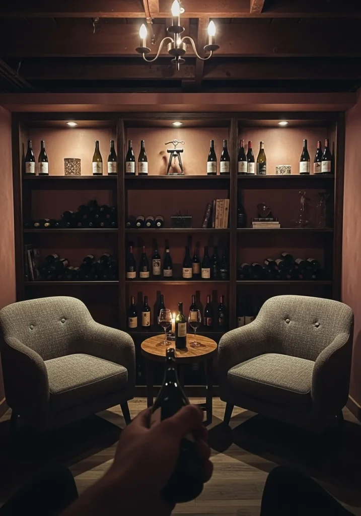 Dark Wood Tone Basement Wine Lounge