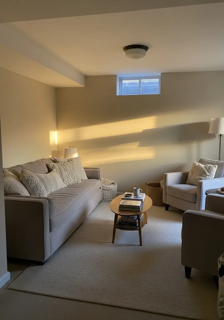 I love how comforting this feels. The color reminds me of quiet evenings and soft blankets. It makes the basement feel like a personal retreat instead of an extra room.