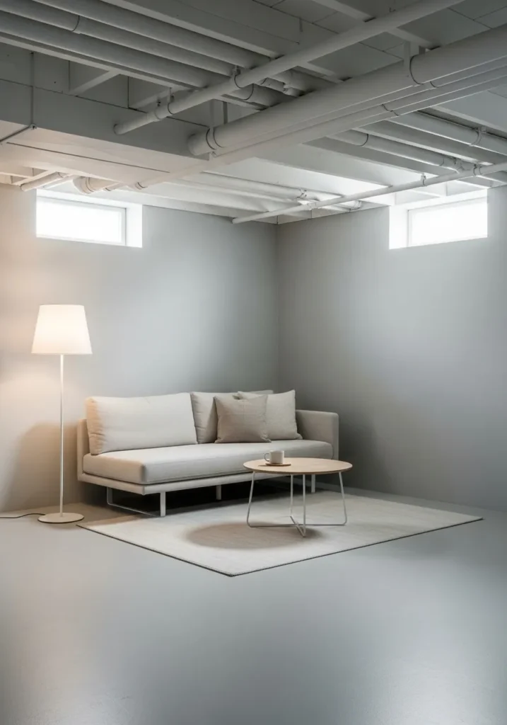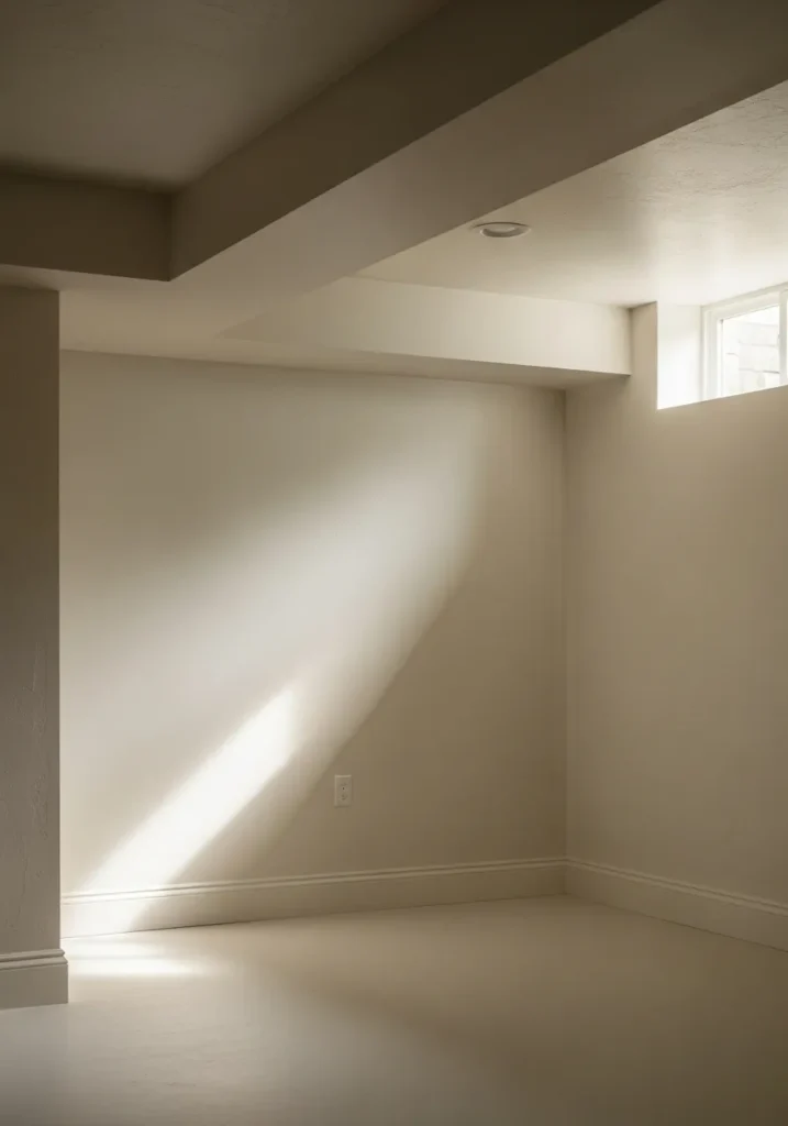 Minimal Basement Room With Soft White Paint