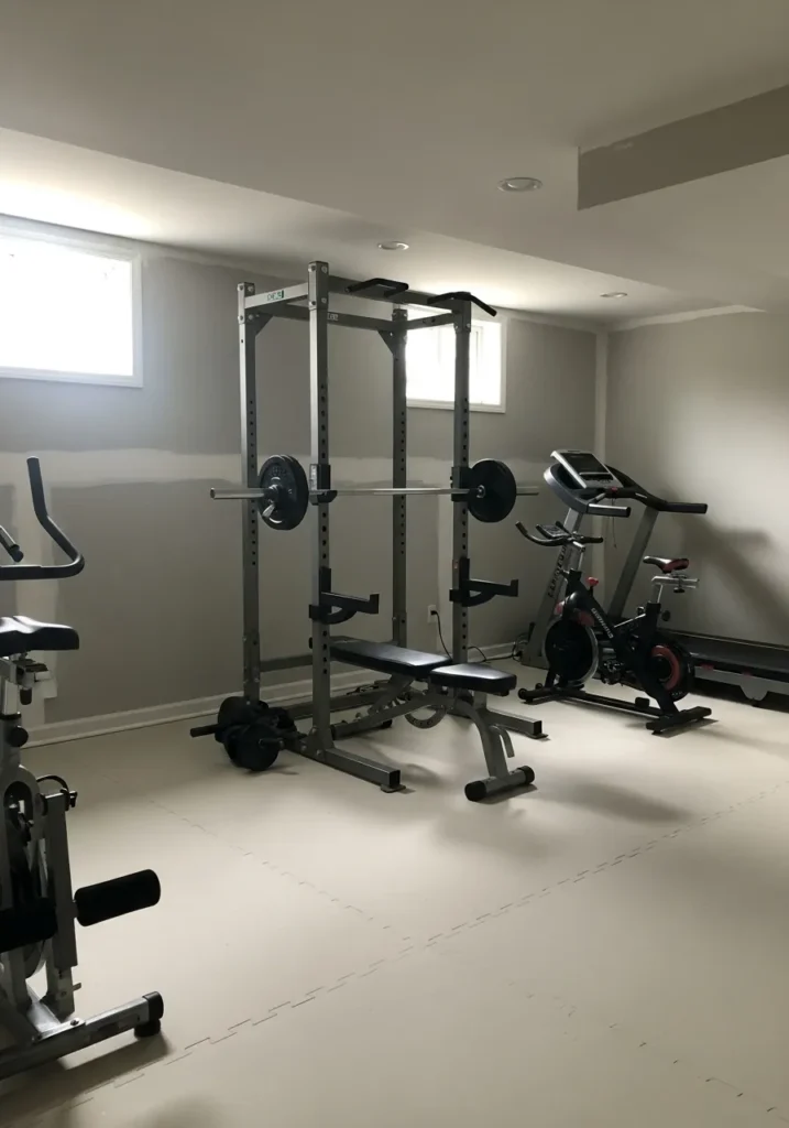 Basement Home Gym With Bright Neutral Walls
