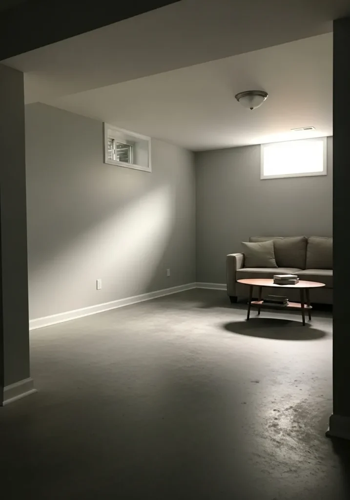 Soft Neutral Basement With Light Reflective Walls