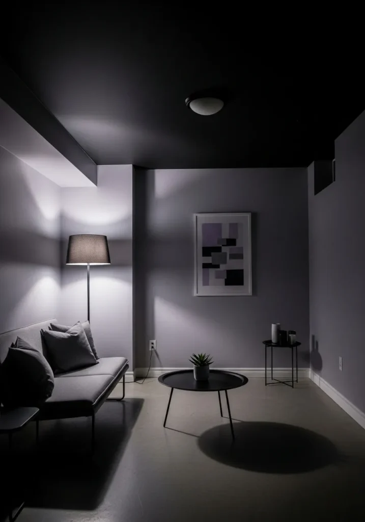 Minimal Basement With Black Ceiling and Soft Walls