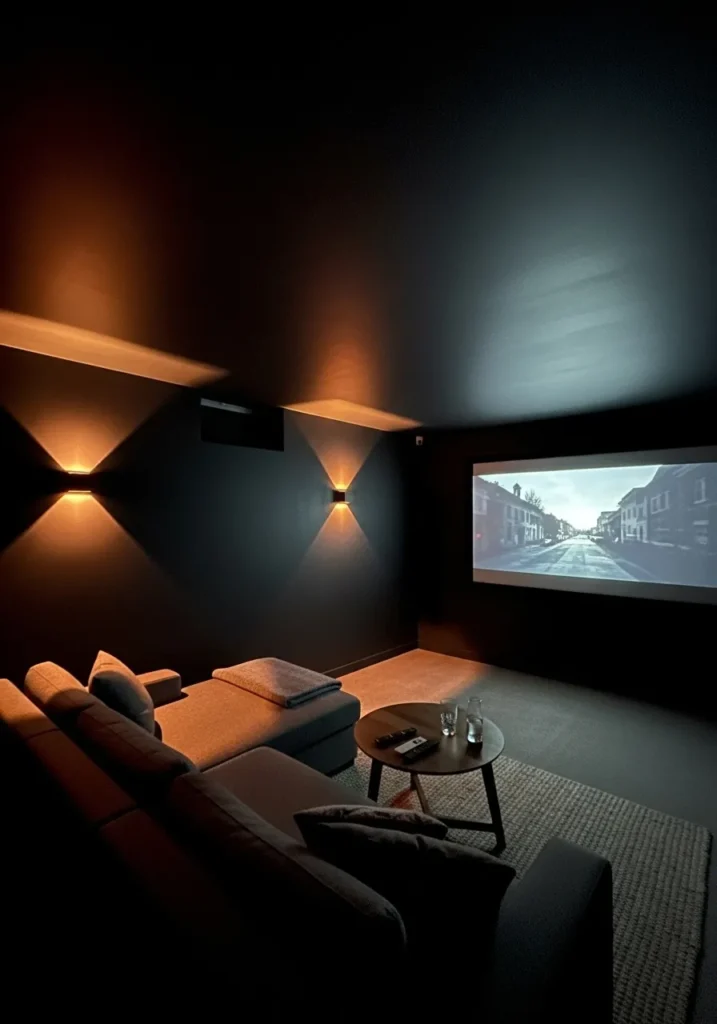 This is exactly how I like a basement media room to feel. The black ceiling adds depth and mood without feeling overwhelming, and the warm lighting keeps it from feeling cold. It feels perfect for movie nights that stretch a little too long.