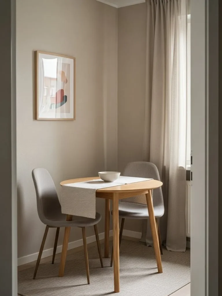 I am drawn to how quiet and cozy this setup feels. It feels perfect for casual dinners or a glass of wine at the end of the day. The beige tone wraps the room in warmth and makes it feel personal. I can easily imagine lingering here longer than planned.