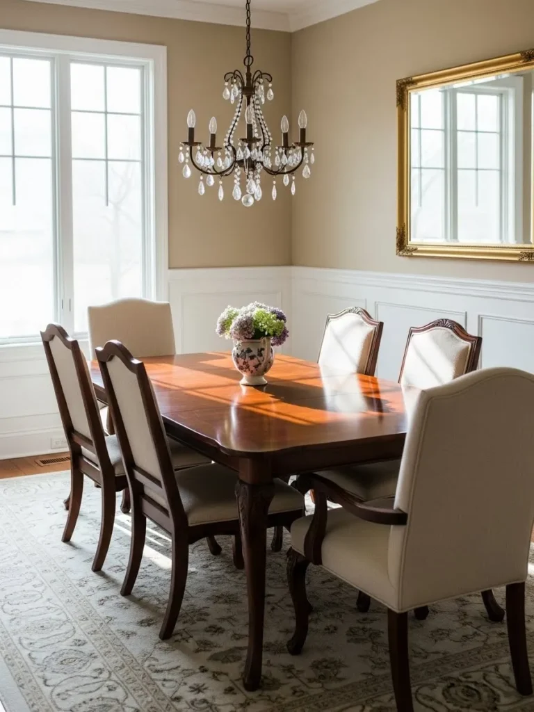 • Classic Beige Dining Room with Timeless Wood Furniture
