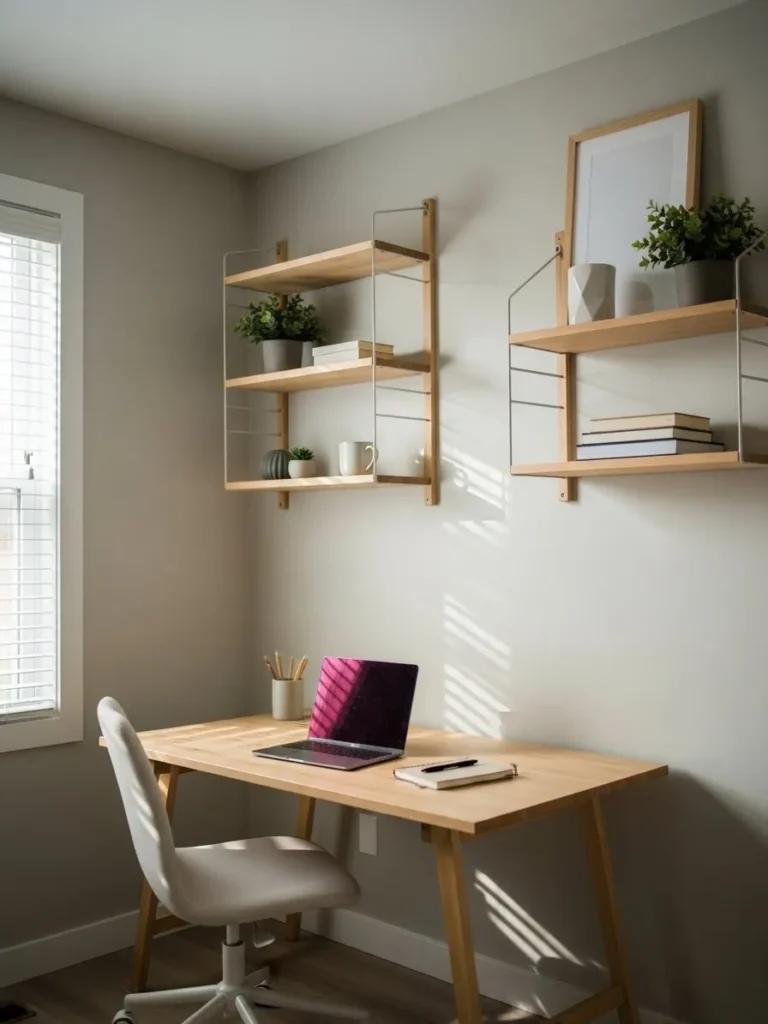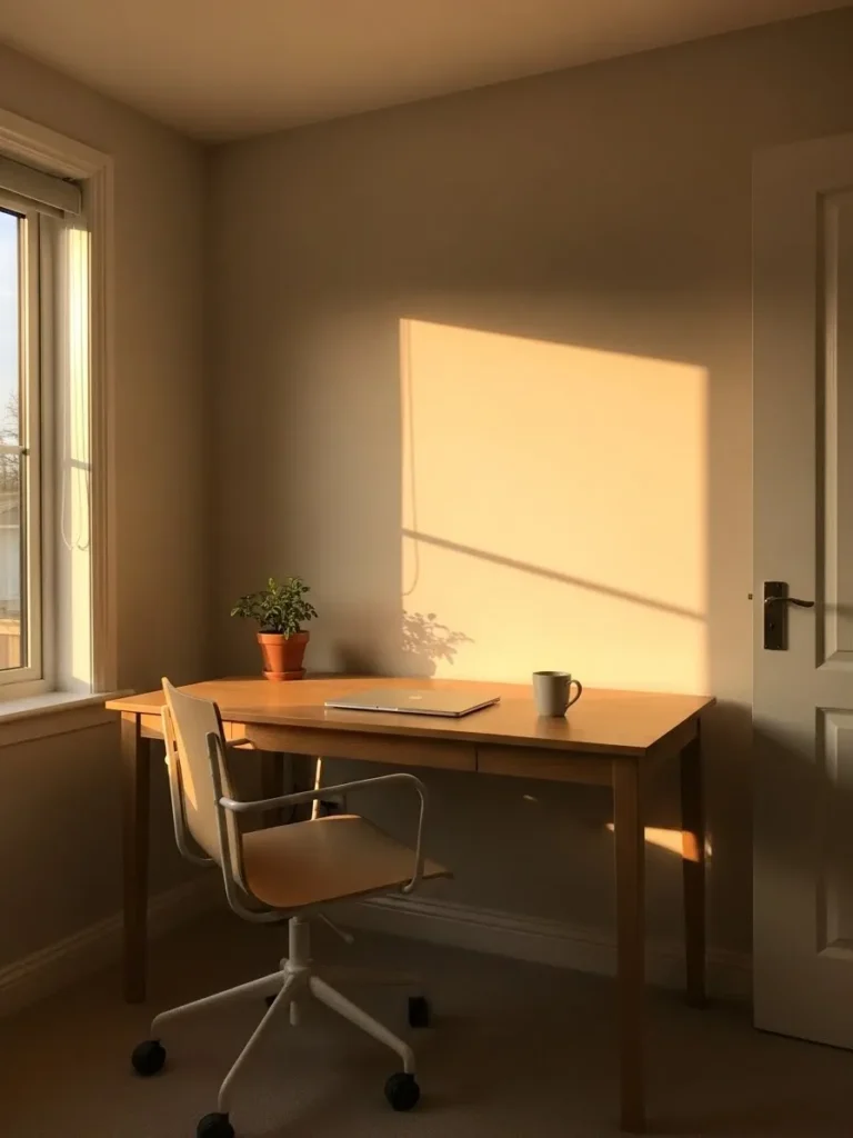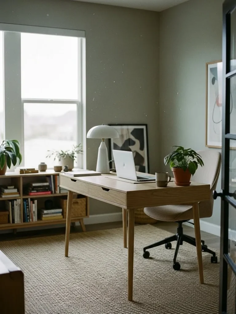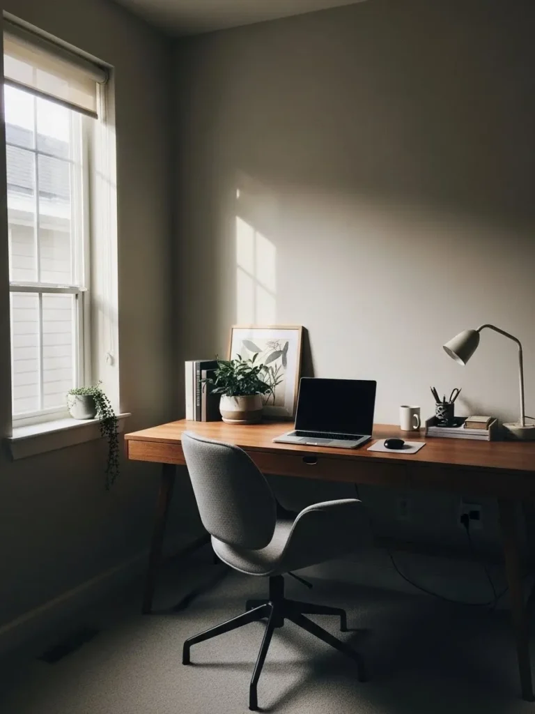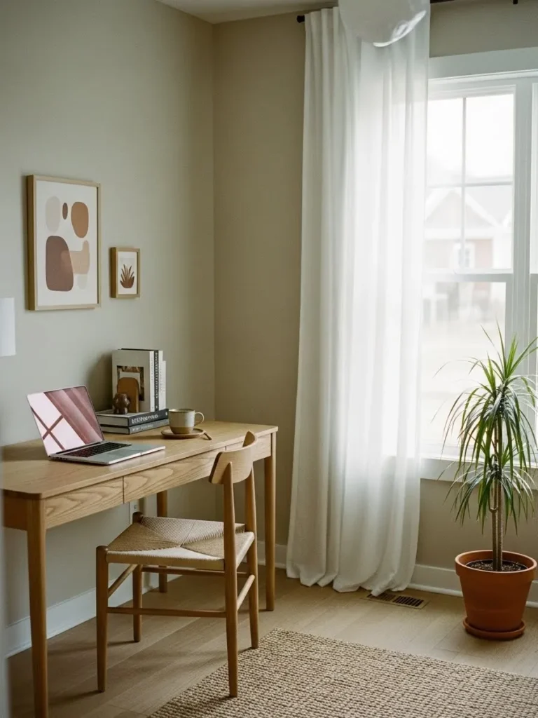 Soft Neutral Home Office with Natural Light