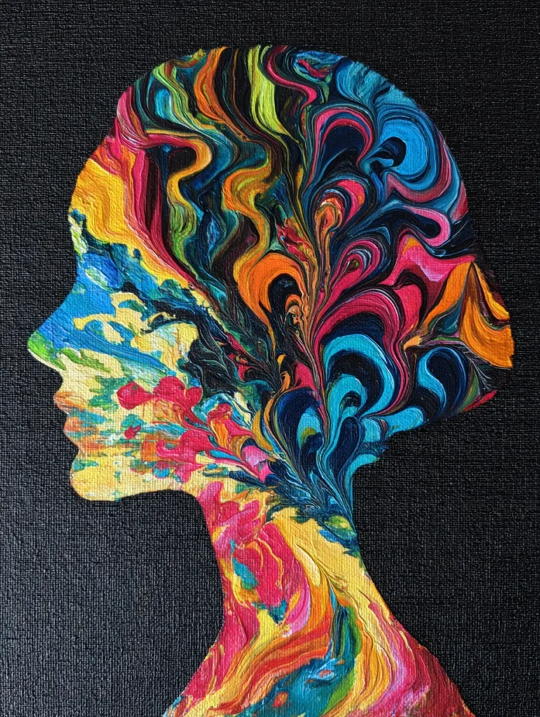 I believe that using a silhouette is a genius way to ground your most experimental fluid art techniques. It gives the eye a familiar shape to rest on while allowing the vibrant, marbled patterns to take center stage as the “thoughts” or “energy” of the subject. You will find that this project is a wonderful opportunity to play with color theory and see how contrasting shades can swirl together to create something totally unexpected and soulful.