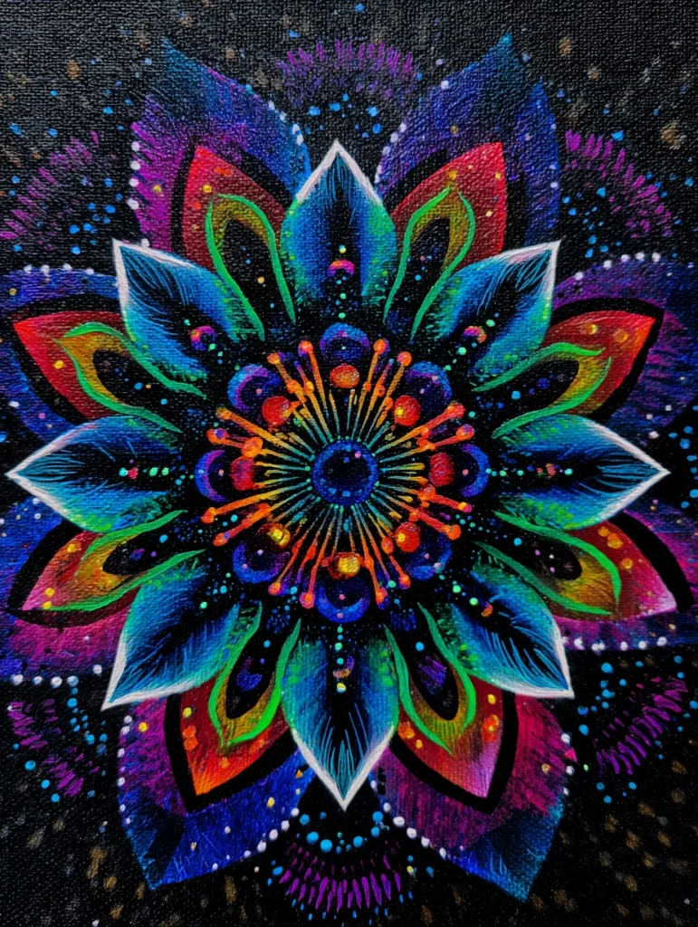 Creating such a vibrant piece is an amazing way to boost your mood and practice your upward stroke technique. I am always delighted by how these warm tones practically jump off the black surface, making the whole process feel very rewarding from the very first layer. You can really get into a creative rhythm as you build the feathered texture, resulting in a finished work that feels both powerful and deeply personal.