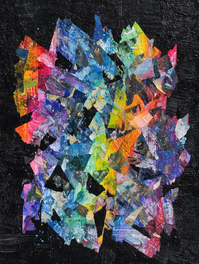 • Abstract Jewel-Toned Mosaic On Black Canvas