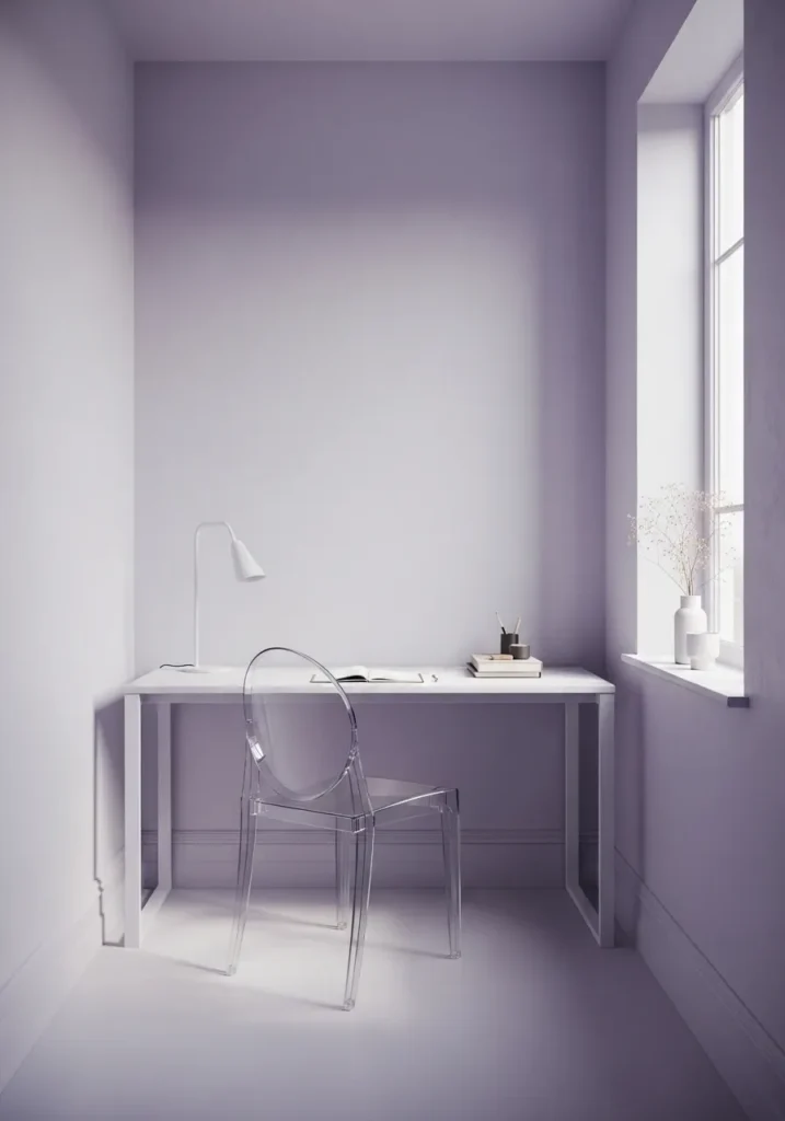 I think this is such a lovely way to bring personality into a small office. Lavender feels creative and gentle at the same time. It adds character without making the room feel busy. Personally, I find shades like this so soothing, especially on days when I need a quiet space to focus and reset.