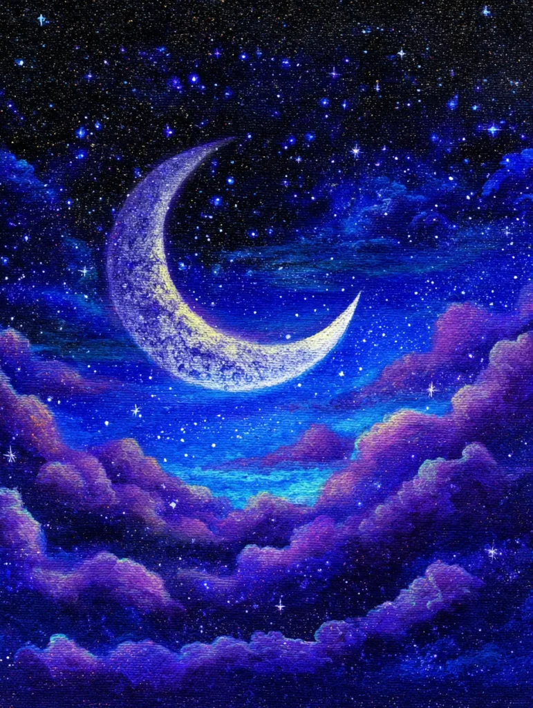 Celestial Crescent Moon Over Velvet Clouds