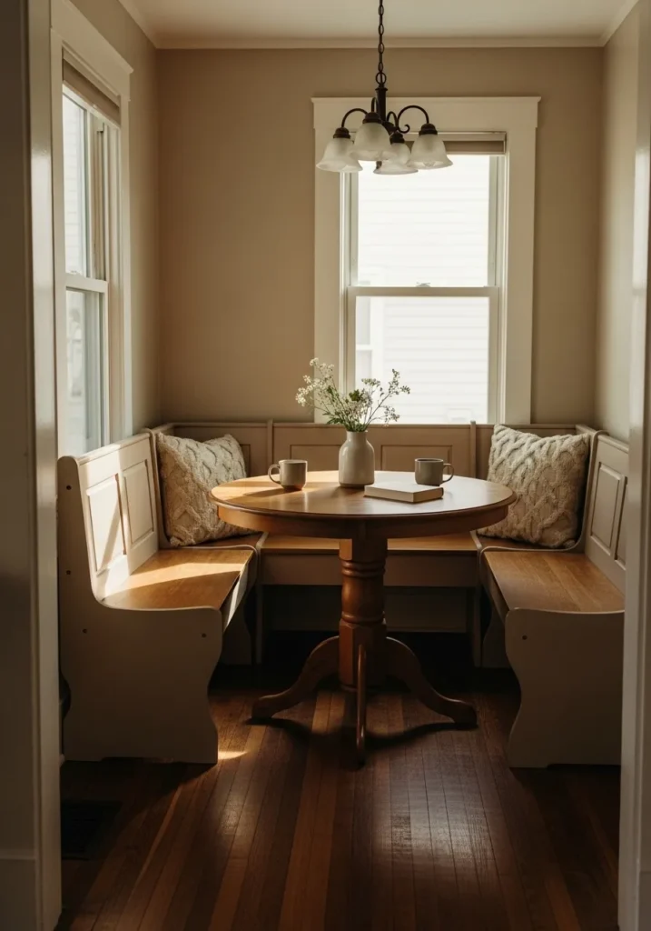 Warm Neutral Walls With Cozy Breakfast Nook Feel