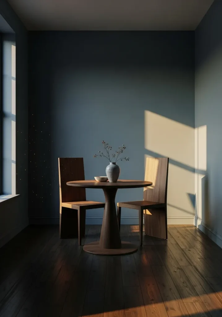 This little setup feels incredibly charming to me. It’s the kind of spot where coffee turns into long conversations. The wall color works perfectly with the darker floor for a relaxed feel.