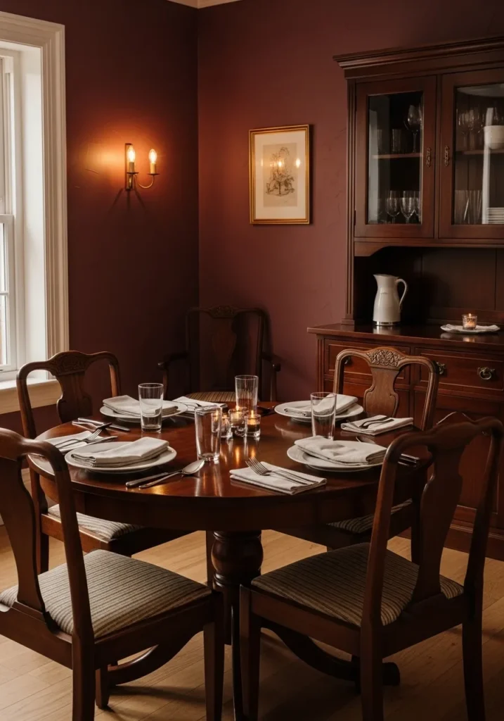 • Burgundy Dining Room With Vintage Warmth