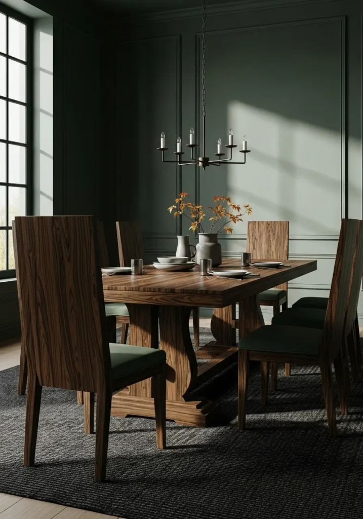 • Forest Green Dining Room With Elegant Depth