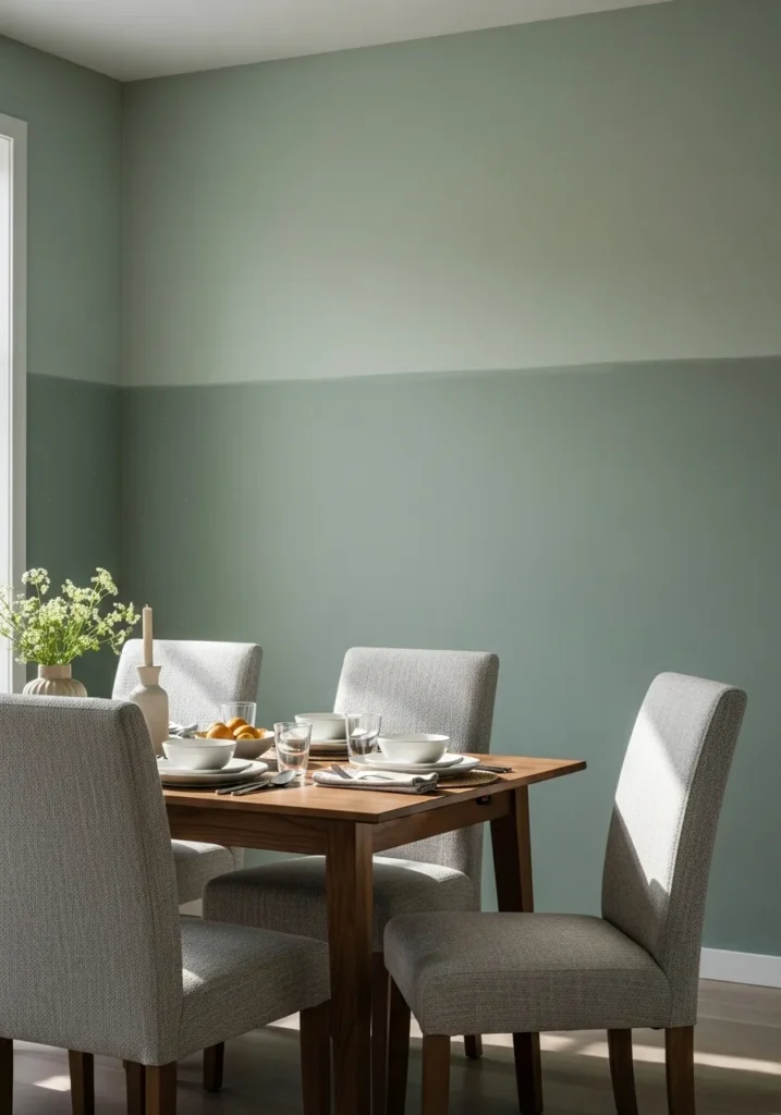 • Soft Sage Dining Room With Subtle Contrast