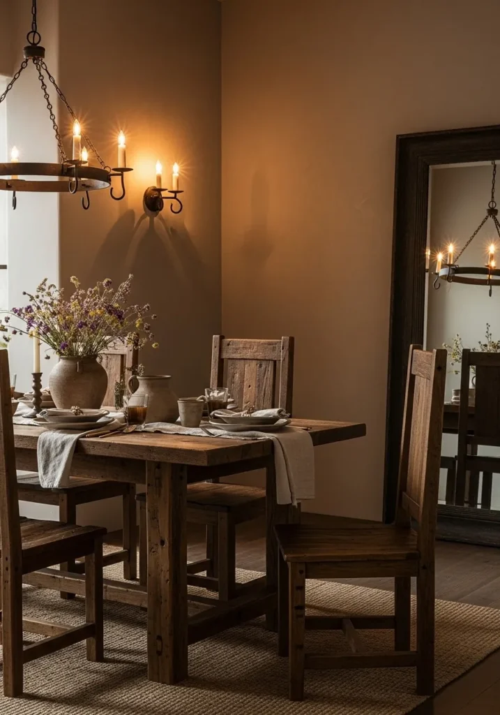 Warm Taupe Dining Room With Rustic Touches