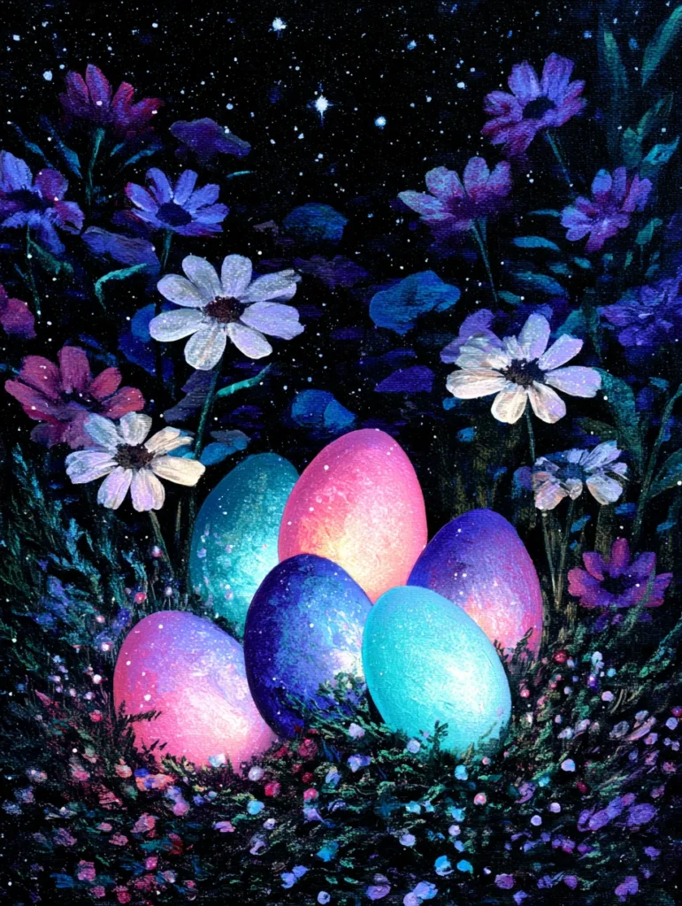 Glowing Easter Eggs in a Midnight Garden