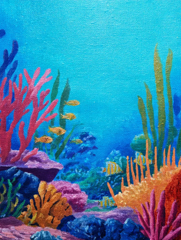 In my opinion, painting underwater worlds is one of the most relaxing things you can do with a brush. There is something so fun about picking out different bright colors for each piece of coral and just letting them grow into fun shapes on the canvas. It is a really rewarding project because you don’t need to worry about perfect lines, and you end up with a piece that feels like a cheerful window into the sea. Plus, it is such a great way to practice layering colors and adding little details like the fish without feeling any pressure to make it realistic.