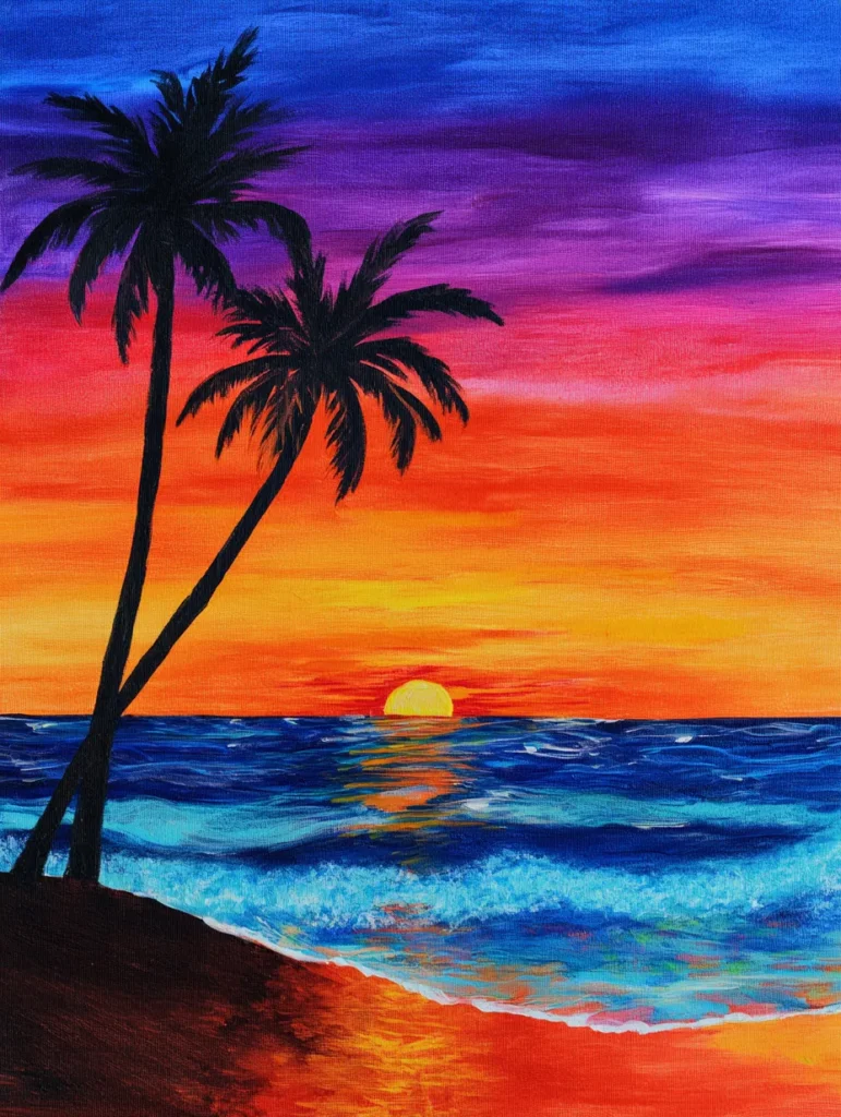 Nothing beats the feeling of painting a beach scene when you are craving a little bit of sunshine in your life. It is such a blast to experiment with blending those bright colors in the sky because you do not have to be precise to make it look gorgeous. You can just let your brush flow and enjoy the process of creating your own little slice of paradise. It is the perfect project to help you unwind after a long day and transport yourself to a warmer place.