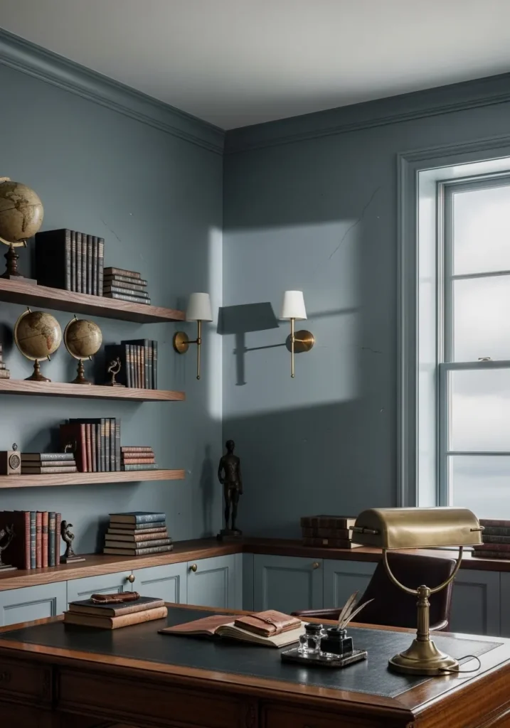 Dusty Blue Walls With Classic Study Charm