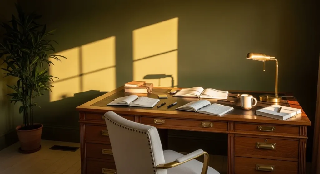 I really appreciate how comforting this shade feels at the end of a long day. It has a calm, grounded presence that makes the room feel steady and inviting. The way the sunlight plays against the walls is honestly what sells it for me. It turns an ordinary work session into something that feels peaceful and almost romantic.