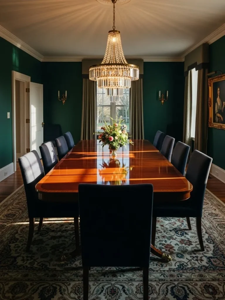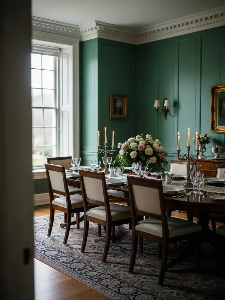 Formal Emerald Dining Room With Traditional Elegance