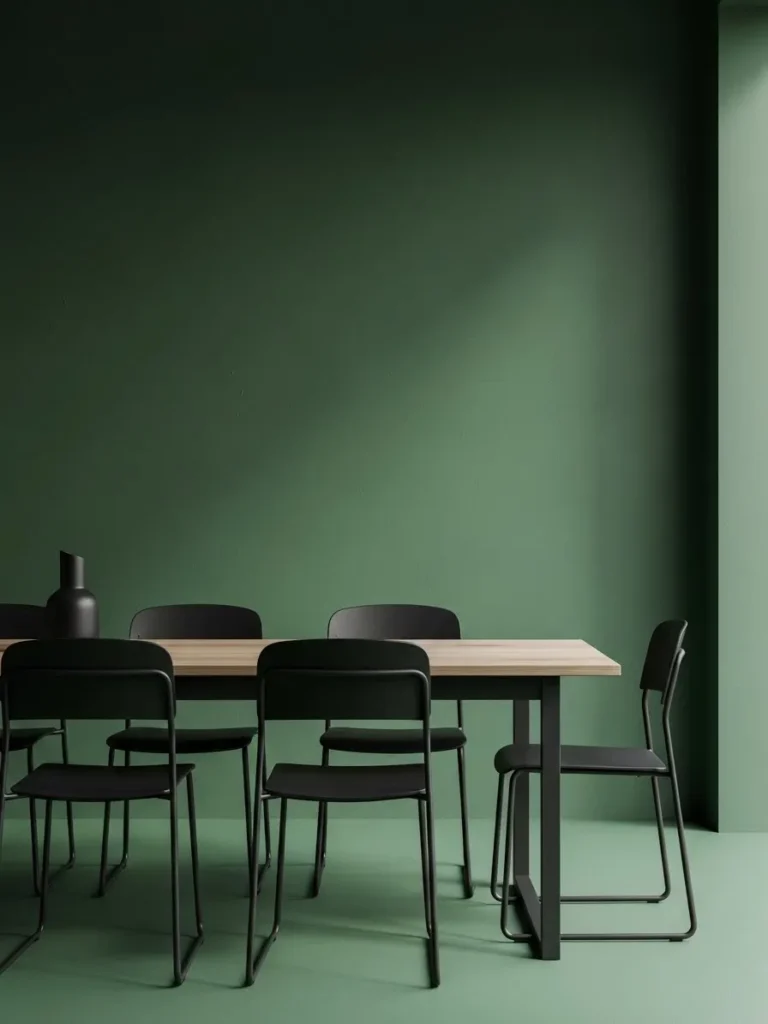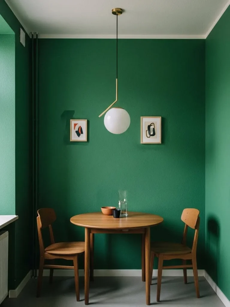 Minimalist Dining Space With Bold Emerald Walls
