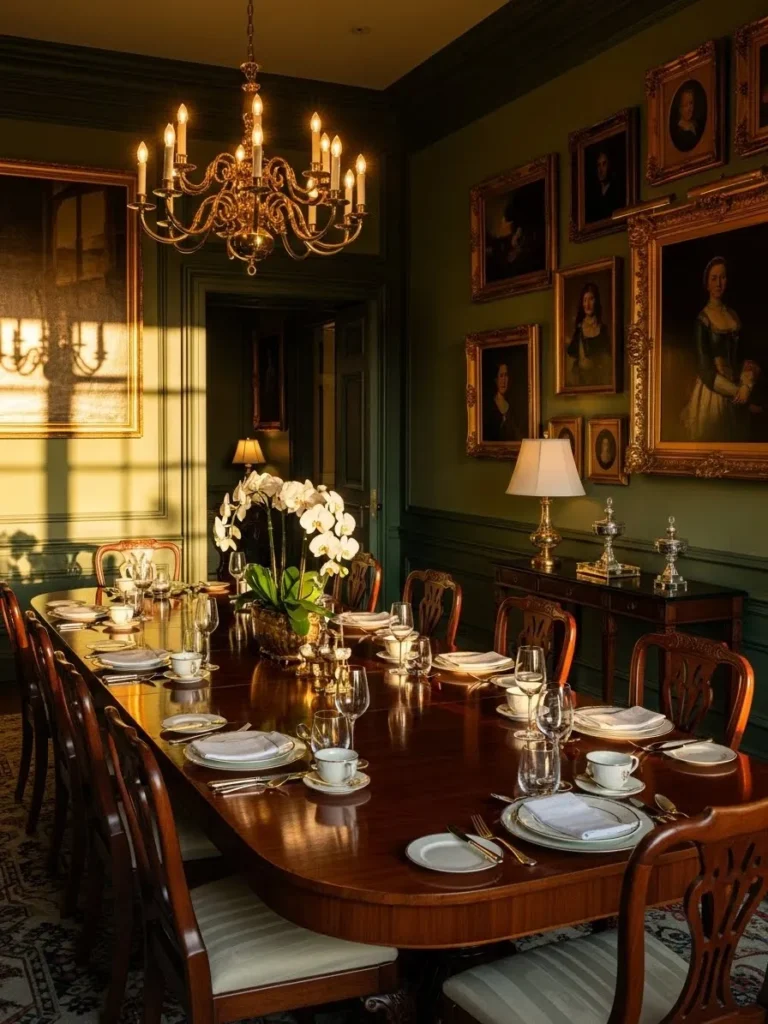 Classic Emerald Dining Room With Gallery Wall Elegance