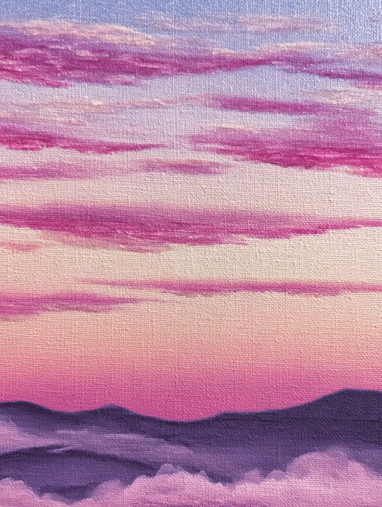I find this specific palette incredibly exciting to work with because these neon berry tones bring so much life to a room. It feels like a wonderful way to play with texture since you can be really brave and messy with those cloud layers. You might find it quite cathartic to just layer on those juicy pinks and watch the sunset come to life right under your brush.