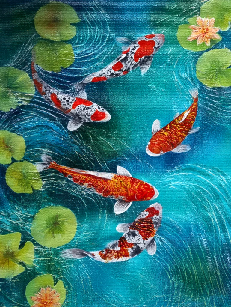 If you like nature scenes that feel both lively and calm, this pond project is a wonderful choice for your next creative session. I am totally enamored by the way those little white ripples make the water look like it is actually moving right before your eyes. It is such a meditative experience to paint the intricate scales of the fish and then balance them with the soft, round shapes of the floating leaves. Recreating this peaceful scene is a great way to practice patience while ending up with a piece that brings a quiet, zen energy to any room.