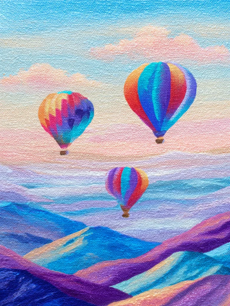 I am charmed by how this piece feels like a gentle morning daydream. It is such a rewarding project because you can play with your favorite color combinations on the balloons while keeping the rest of the scene very simple and calming. Blending those soft pastel layers in the sky is incredibly therapeutic and helps clear your mind. You will find that painting the repetitive curves of the hills is a great way to find your creative flow without any pressure. This design is perfect for adding a touch of whimsy and optimism to your art collection.
