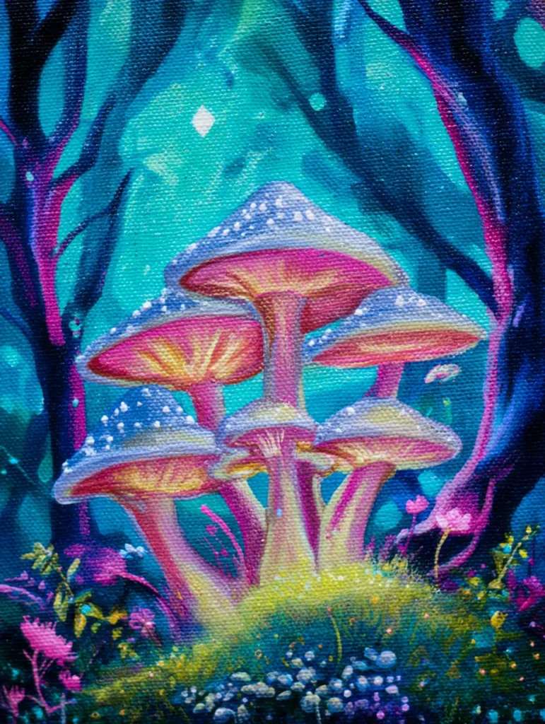 If you enjoy themes of fantasy and nature, this project is a total delight to recreate. I feel completely spellbound by the way the neon colors make the whole scene look like it belongs in a fairy tale. It is a fantastic opportunity to practice your blending techniques while experimenting with high-contrast lighting. You can truly let your imagination run wild with the background details to make this little forest corner your own.