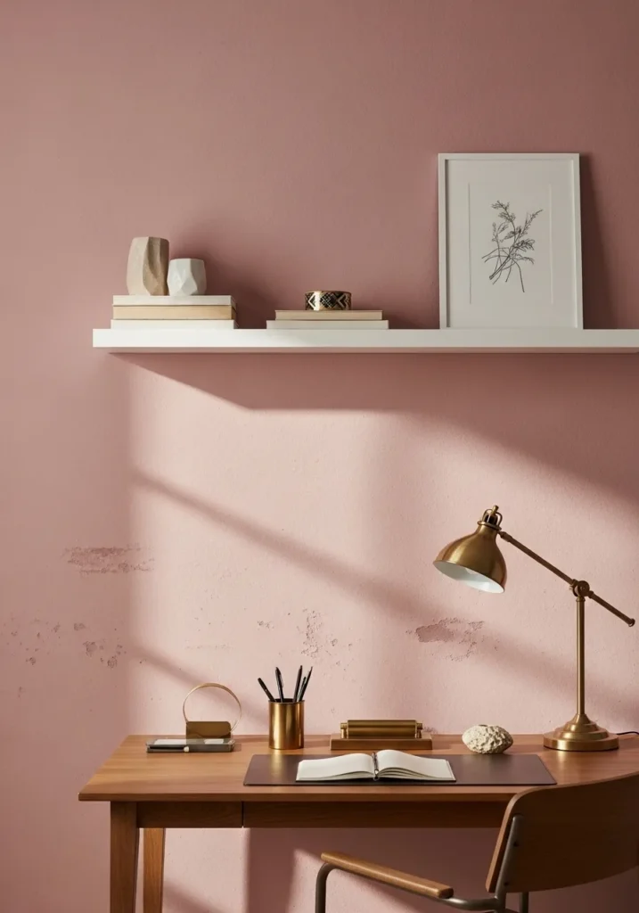 I honestly adore how this shade makes the office feel both creative and comforting at the same time. It brings personality without overpowering the room. The soft pink feels uplifting on busy workdays and still polished enough for video calls. It is the kind of color that quietly boosts your mood the moment you walk in.