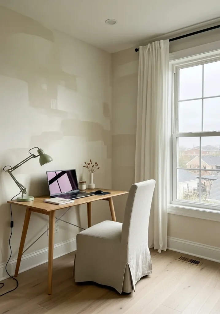 I always appreciate a soft neutral like this when I want a fresh start. The gentle tone creates a calm background that helps me focus without distractions. It feels effortless and timeless, which is exactly what I want in a home office. Sometimes simplicity really is the most inspiring choice.