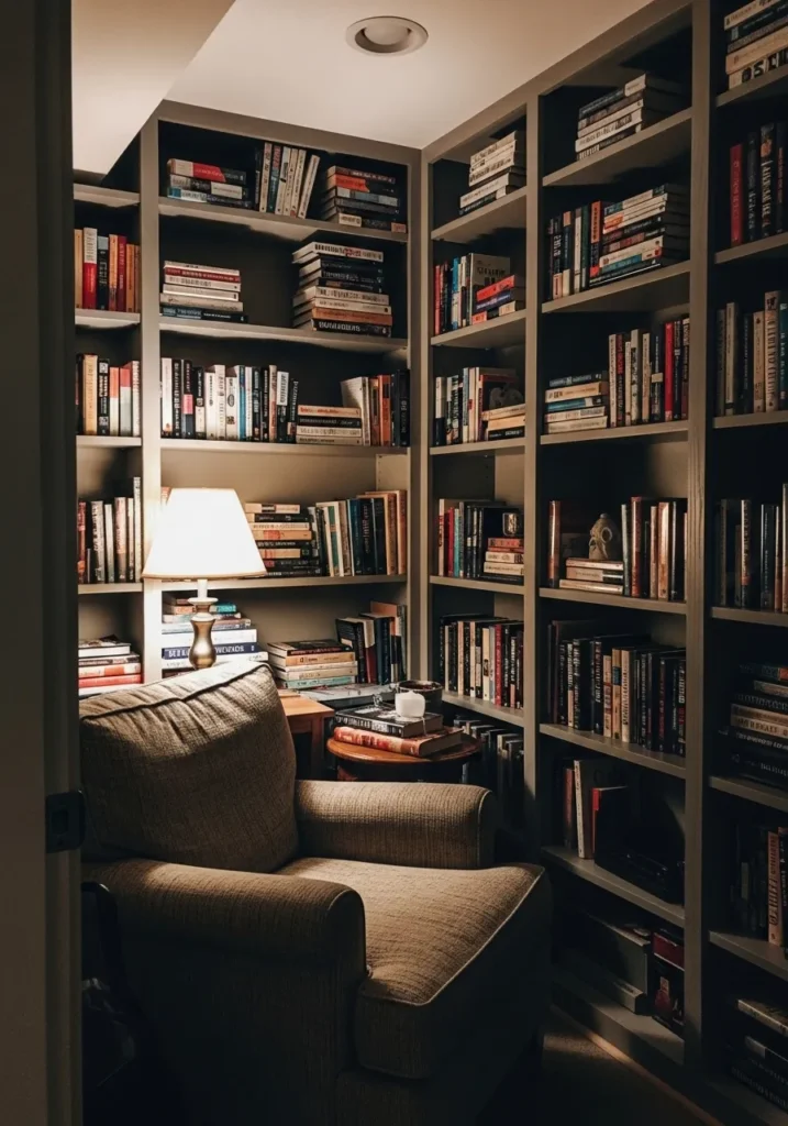 Gray Basement Library Corner
