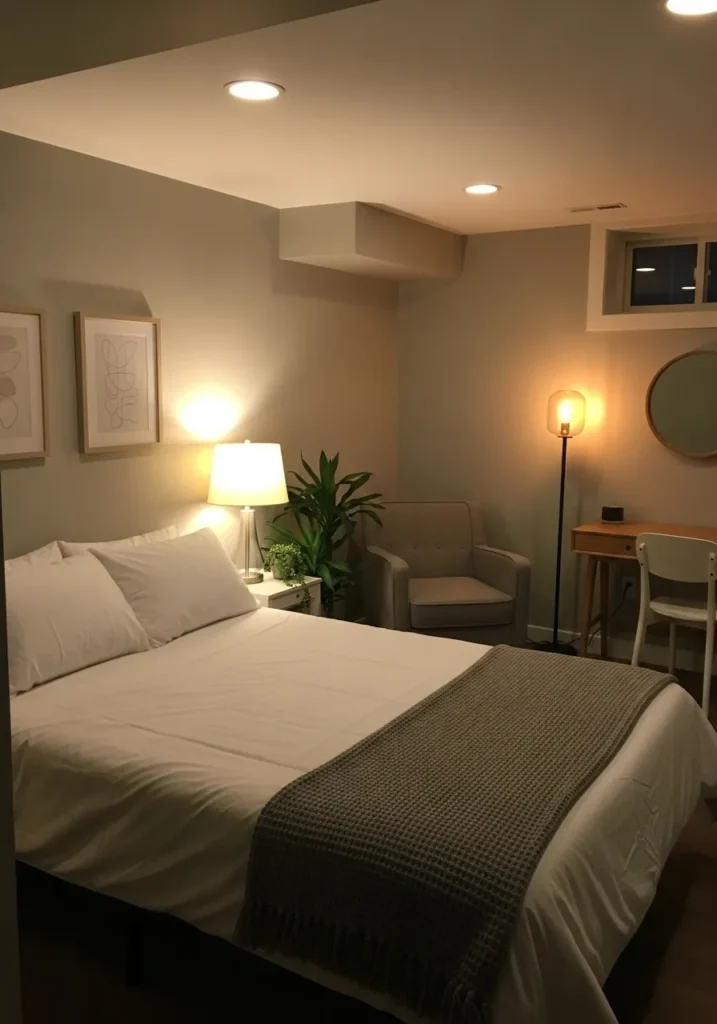 Soft Gray Basement Guest Bedroom