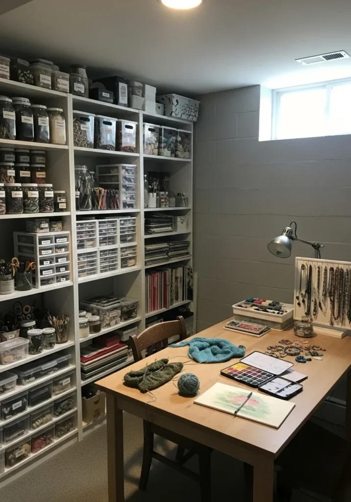 Gray Basement Craft and Hobby Room
