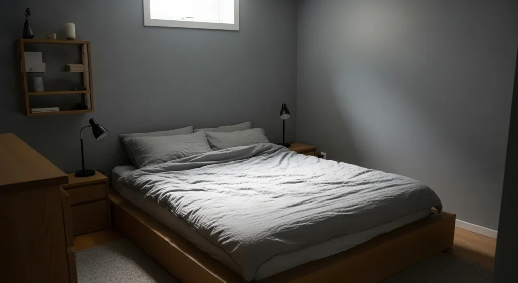 This guest bedroom uses a balanced gray that feels clean and restful. The shade pairs effortlessly with neutral bedding and soft lighting, helping the room feel bright despite limited natural light. The gray adds depth without feeling heavy, keeping the space relaxed and modern.
