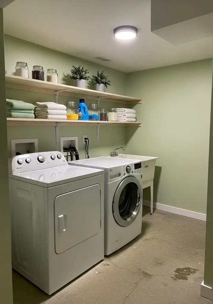 Green Basement Laundry Room