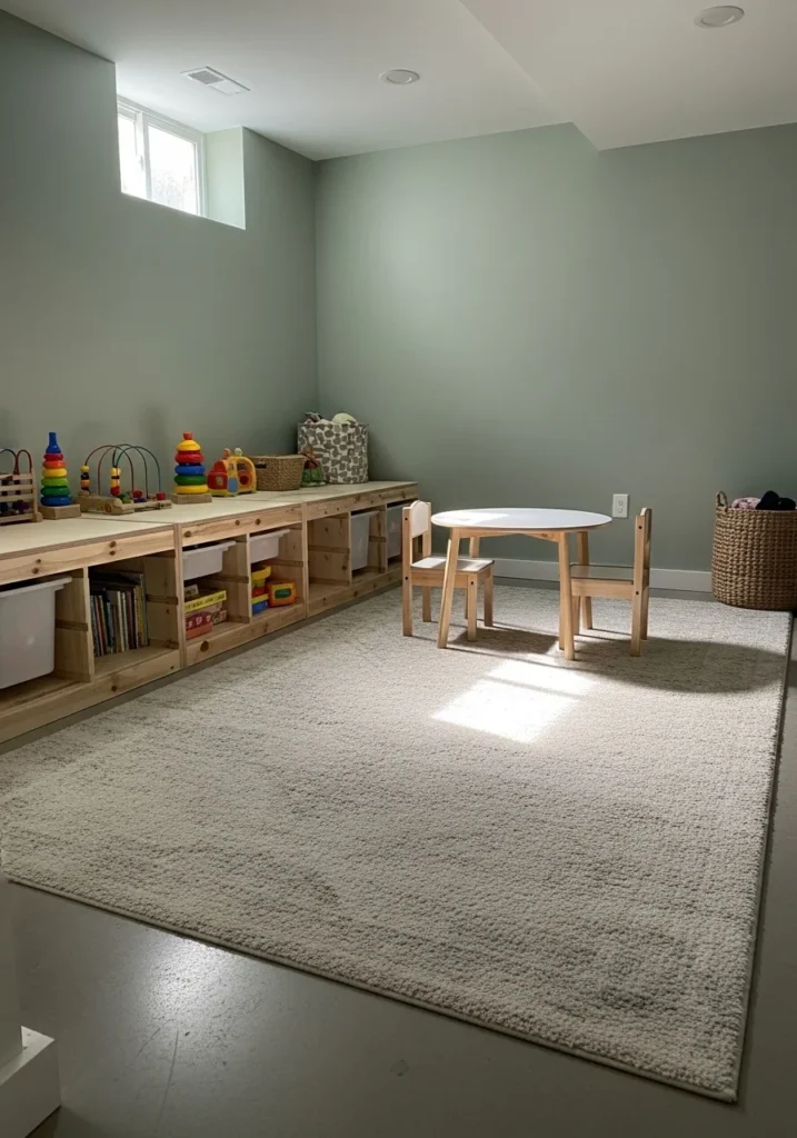 Calm Green Basement Playroom
