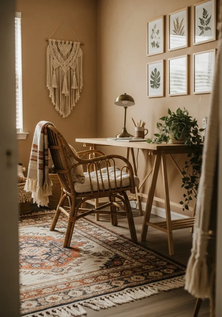 Warm Camel Office With Boho Touches