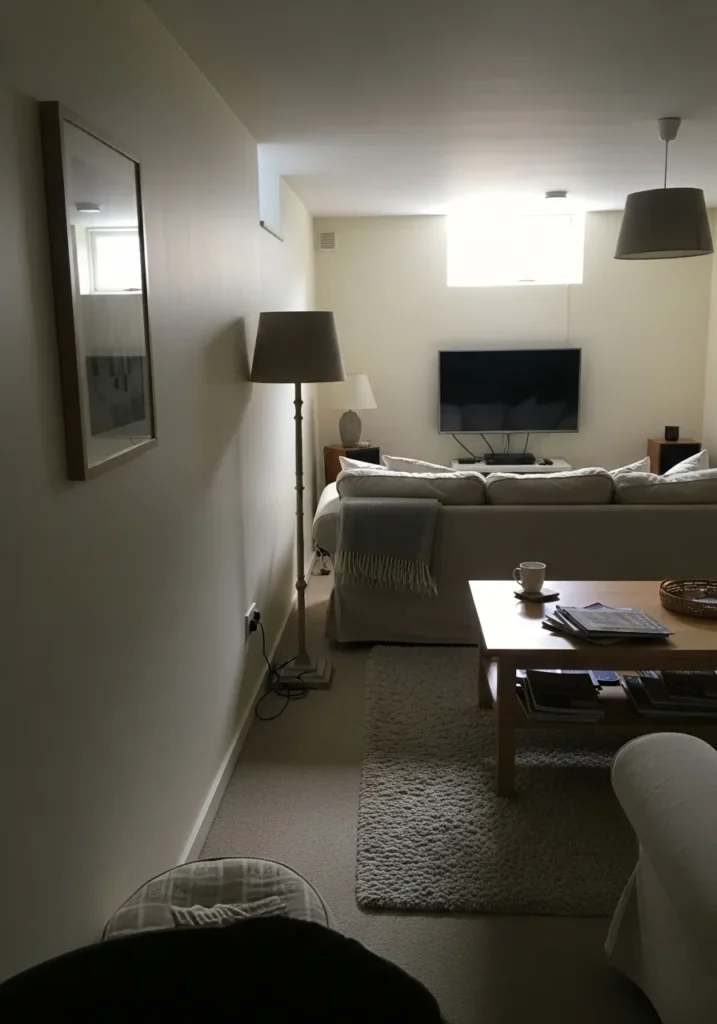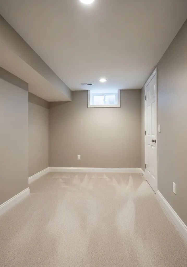 I really love how beige creates instant breathing room. It feels warm without shrinking the space. This kind of color makes a basement feel more relaxed and open.