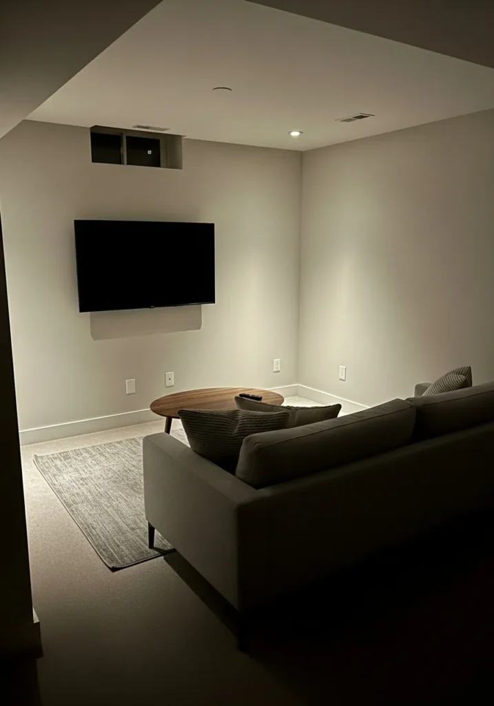 I love how calm and intentional this feels. Light paint like this makes a basement feel finished without trying too hard, and it gives the whole room a relaxed vibe that works just as well for movie nights as it does for everyday lounging.