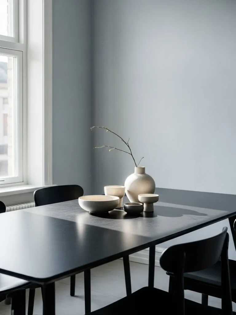 I really enjoy how peaceful this space feels. The color makes everything feel lighter and calmer. It feels like a room that adapts beautifully throughout the day. This shade is perfect for creating a relaxed everyday dining space.
