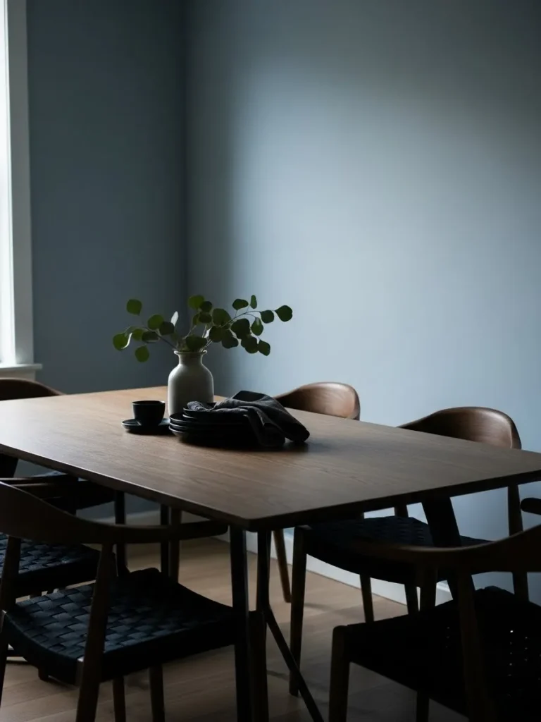 I think this shade is perfect for creating a relaxed dining experience. It feels soothing and stylish at the same time. The blue works beautifully with natural materials. This is the kind of room that feels cozy even during quiet meals.