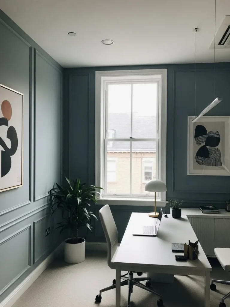 If you want a modern office color that feels fresh but still timeless, this one really hits the sweet spot.