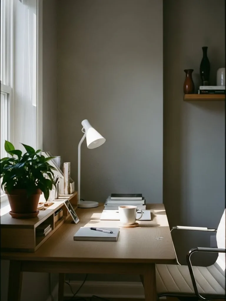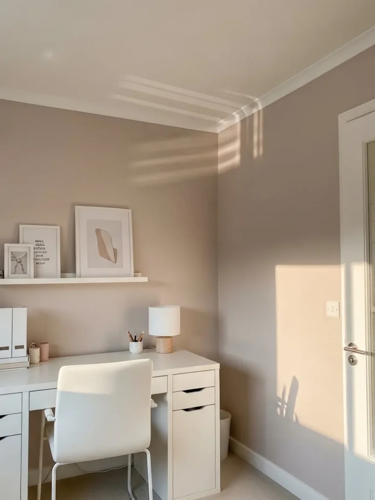 Soft Taupe Office With Warm Natural Light
