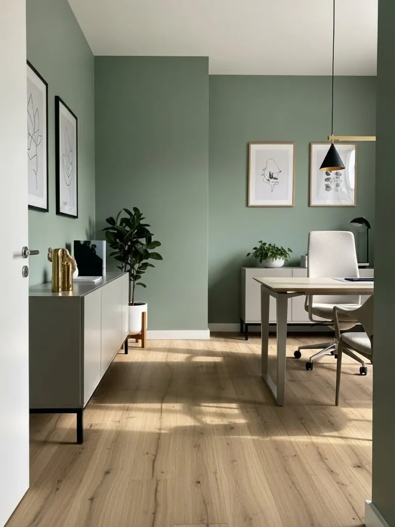 Soft Sage Green Modern Home Office
