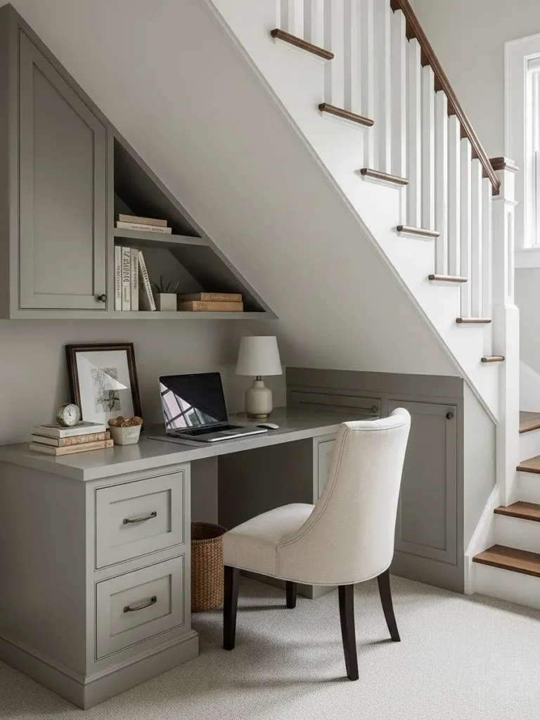 Soft Mushroom Gray Under Stair Office Nook